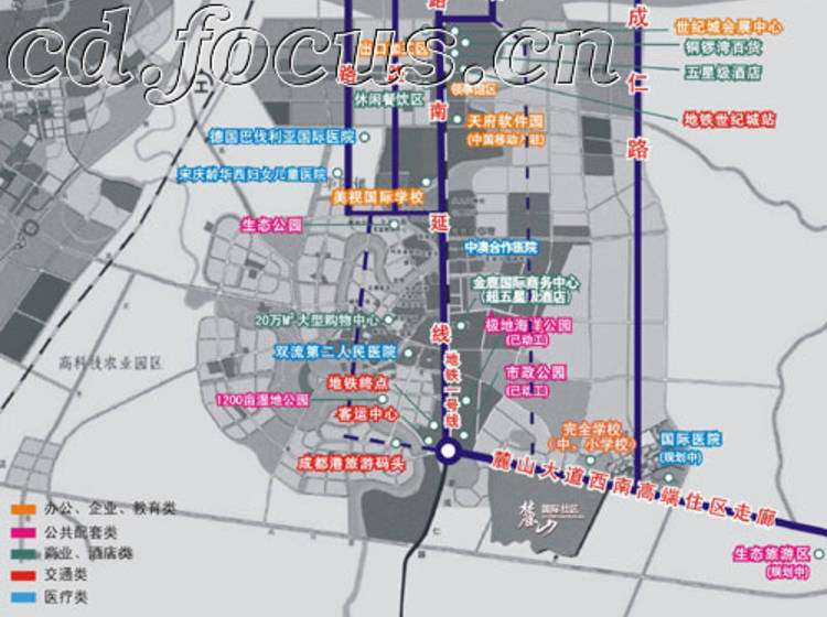周边配套:极地海洋公园、1200亩湿地公园、市政公园、成都旅游港码头、世纪城会展中心、洲际大酒店、希尔顿酒店、金鹿国际商务中心、成都第一人民医院、德国巴伐利亚国际医院、宋庆龄华西妇女儿童医院、国际医院、双流第二人民医院、家乐福超市、远大购物中心。
