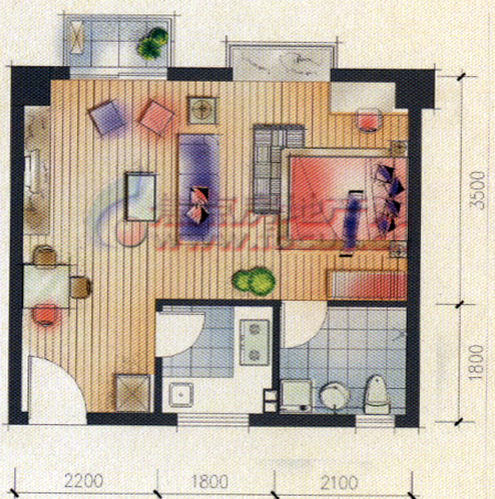 2室2厅1卫-天河盛景2、3号楼B户型2室2厅1卫1厨 99.83㎡