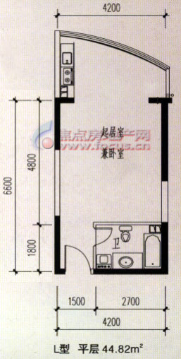 1室1卫-L型平层户型
