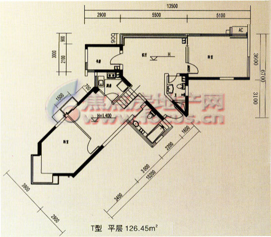 3室2厅2卫-T型平层户型