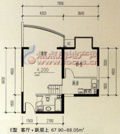 1室1厅1卫-E型客厅+跃层(上)户型