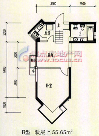 1室1厅1卫-R型跃层(上)户型