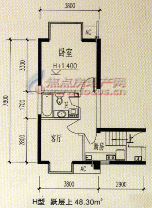 1室1厅1卫-H型跃层(上)户型