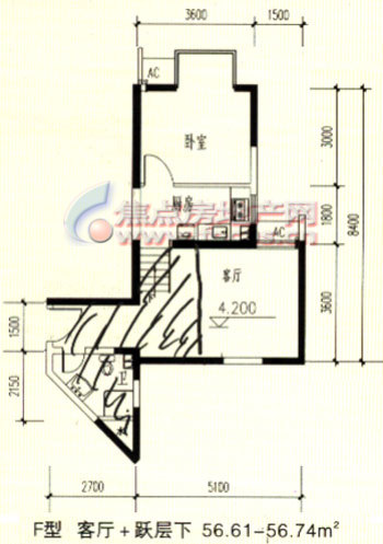 1室1厅1卫-F型客厅+跃层(下)户型