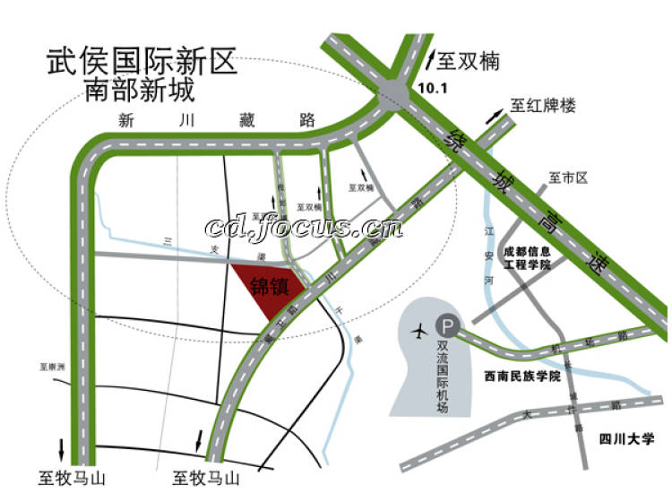 双流中学,双流实验小学,老妈兔头、八一家具城等。