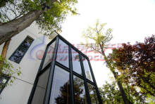 倾城莲花在传统的中式院落风格中还注入了许多现代建筑元素,红砂岩、钢结构、罗普斯金彩铝、拉法基水泥屋顶等现代科技出品,打造出属于倾城莲花的河居院墅生活。