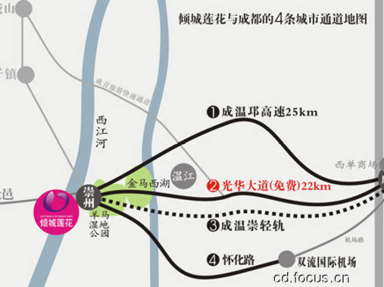 成温邛高速(今年6月将免费通行)、规划中的城市轻轨、光华大道和草金路延线两条城市快速走廊,构成完美大都市交通网架。大成都二、三圈层核心发展区域,未来3~5年上佳居家休闲空间。