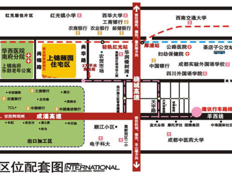学校:上锦颐园二期内设置幼儿园、周边有电子科技大学新校区、四川大学锦城学院、西南交大、西华大学、托普大学、四川外国语学院成都学院、以及成都外国语学校、成都树德中学高新西区实验小学、高新区二小、高新西区规划幼儿园等,形成了一个从幼儿园到大学的完善教育。