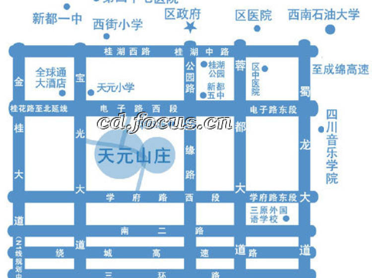 “天元山庄”是成都宇亮实业有限公司在城北打造的低层低密度原生态住宅。天元山庄以遵循自然为原则,突破传统风格局限,优质结合了川西民居和现代建筑的特色和风格,创造出一个近繁华,远喧嚣的都市尚境;一个弥漫着百分百空气纯度的居所;一个优美、和谐的原生态社区;一个有着浓郁人文气息的和乐家园。天元山庄倡导“新原生态文化、新健康文化、新享受文化、新品位文化”的现代人居建筑设计理念,打造“公园地产时代的生活样板区”。