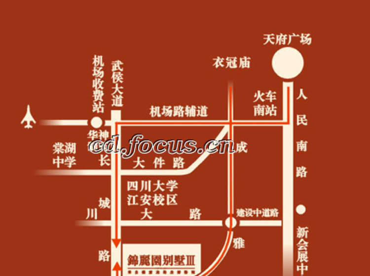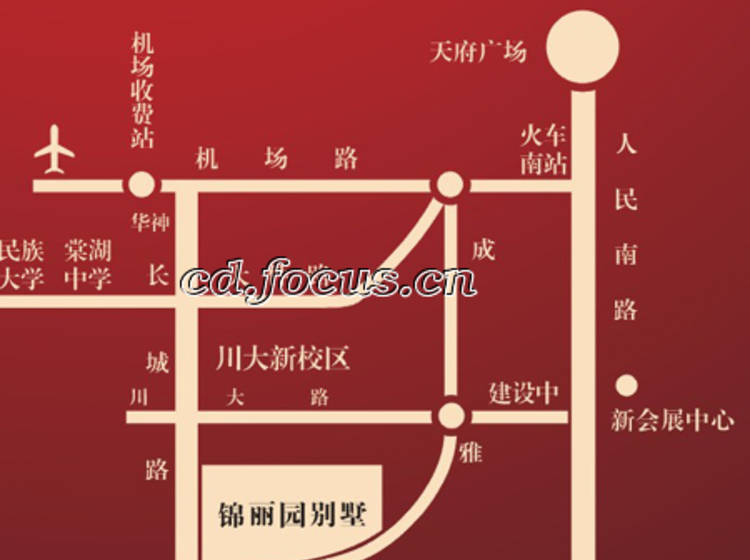 錦麗園別墅位於城南航空港江安河畔長城路,周邊配套成熟,環境優美。從火車南站到家11公里,僅12分鐘車程。川大江安校區、民族大學新校區等5所高校,人文氣息濃郁。機場路、大件路、成雅高速,條條大道通錦麗,城南排名前列居所。