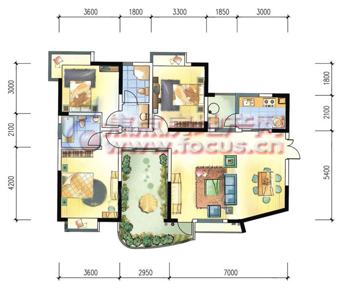 小区内部配套:蒂森电梯智能系统、负压新风系统、红外光幕安防系统等共建人性化住宅