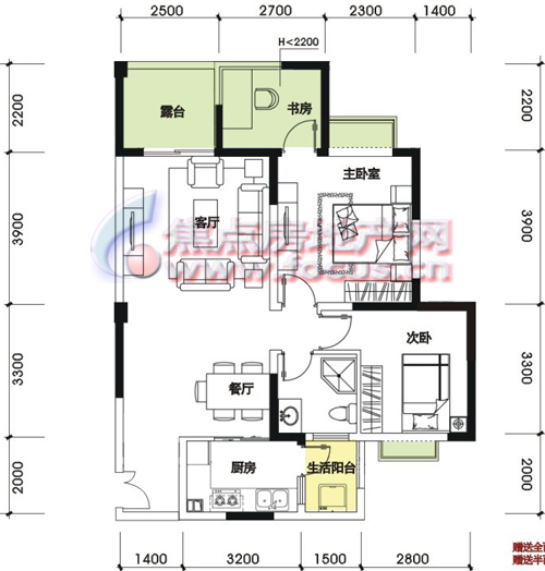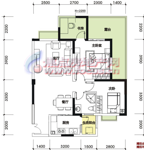 2室2厅1卫-J户型奇数层