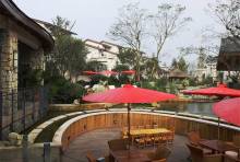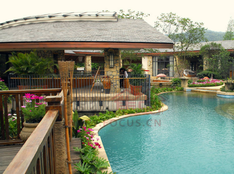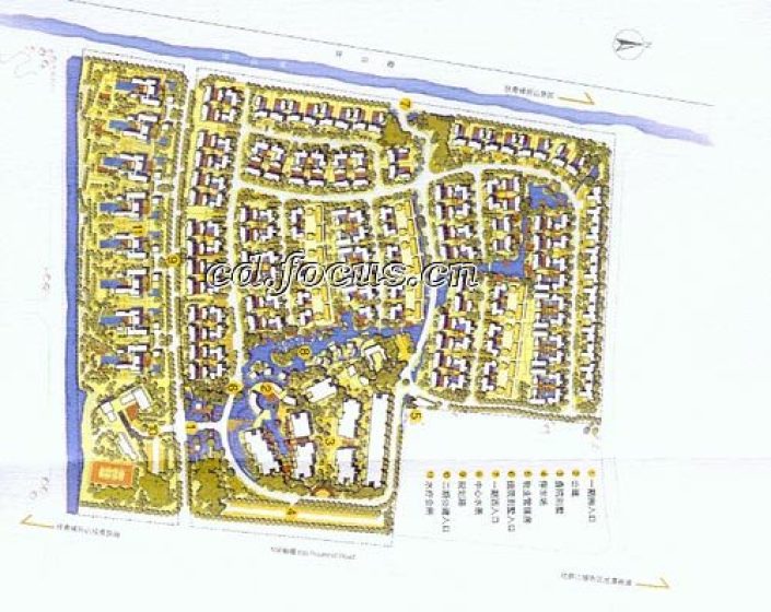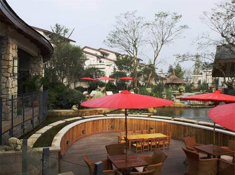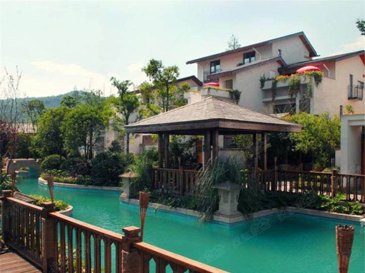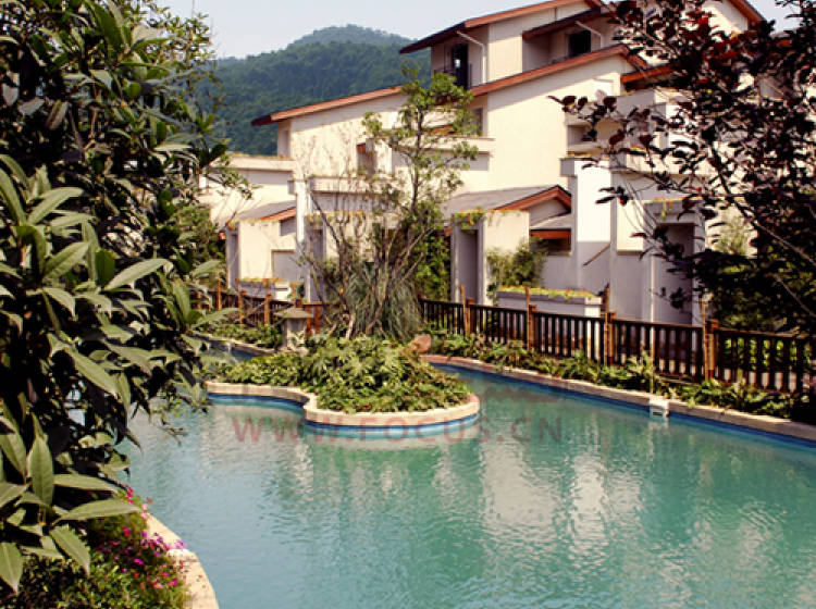 项目充分体现高端生活化度假别墅的定位,在社区内拥有优美的居住环境,休闲雅致的度假气息。自园区西北向东南形成一条落差一米左右的主景观水系,由环山渠将活水引入园区水系,在园区形成活水。此外,项目在入口处用近30亩的土地营造景观,通过空间的围合与流动共同营造轻松、闲适的度假气氛。同时,利用景观视廊,借景青城山,达到户户观山的优质观景效果。