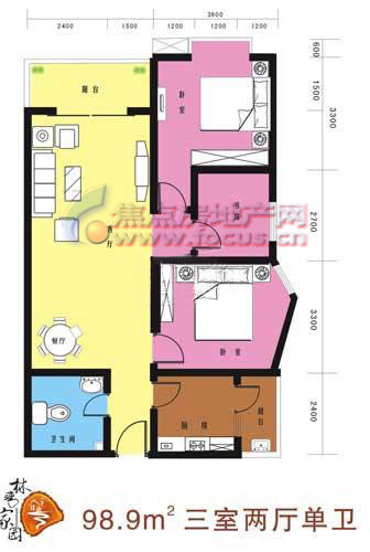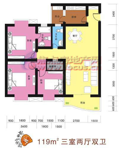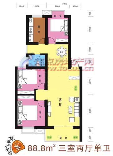 3室2厅1卫-户型图6