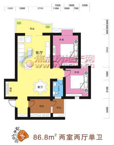 2室2厅1卫-户型图2
