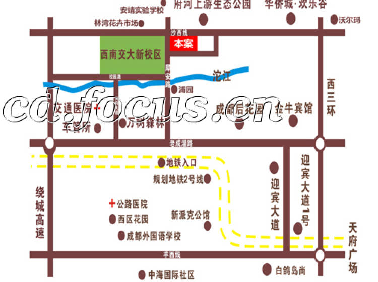 【沙西欣城】位于成都西大厅,上风上水,素有长寿之乡的安靖镇林湾村,正对西南交大新校区,处在新校区指挥部旁边,离三环路不足6公里。