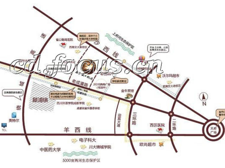 公交车221、305、310、311、511成灌路轻轨 和 地铁2号线