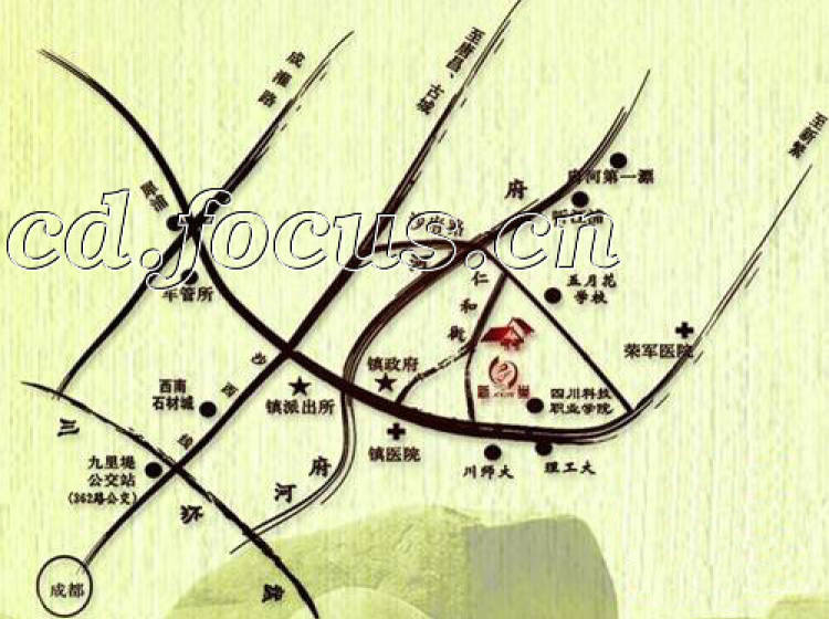 鸿盛花园位于成都西府河源头的团结镇,属于成都水源上游生态保护区,严格控制工业等污染,目前团结镇发展高校经济,有成都理工大学广播影视学院,四川师范大学成都学院,希望集团五月花计算机学校,西南科技职业技术学院四所高校约五万名莘莘学子,是名副其实的大学城,为团结镇的经济发展注入了极大的动力。