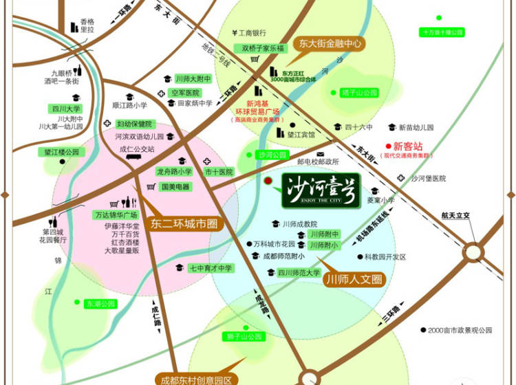 沙河壹号位于锦江区静康路,是沙河堡片区的一号地块,距二环路直线距离仅800米,与万科城市花园以及四川师范大学为邻,兼聚繁华与宁静,是国嘉地产2009年继四海逸家、新视界广场、锦江城市花园公园天下之后,倾力打造的又一精品项目。沙河堡,紧邻成都东大街金融中心,随着城东副中心的建设,沙河堡将成为成都最炙手可热的居住板块之一。 沙河壹号由两个相邻的地块组成,占地46728.69平米,建筑面积约30万平米,项目采用“大空间,大围合”的设计理念,形成两个相对独立又视觉相通的围合式空间。以12000平米的超大空旷绿地,200米的超大视距,较低的建筑密度,打造出优美宽敞的的宜居环境。建筑的外立面采用现简洁大气、硬朗的造型设计,精致的细部处理,凸显中高档楼盘的内敛气质,并符合都市人前卫、文化的审美趣味。 沙河壹号规划有10栋住宅以及3栋集商业、办公、居住、酒店等为一体的 “城市综合体”。项目住宅的户型区间为70-110平米,空间规划为创新的成长型N+1户型,方正大气,动静分区明确,视线通透性强,增加一个空间的使用,更增加生活的N种可能,满足在成长期的年轻家庭,生活形态不断变化的需求。