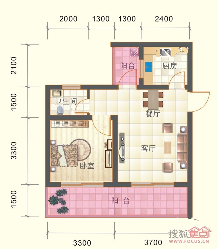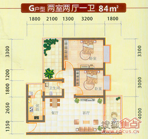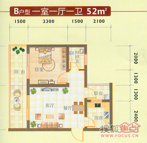 1室2厅1卫-水乡中南海户型图