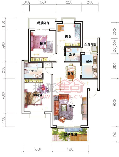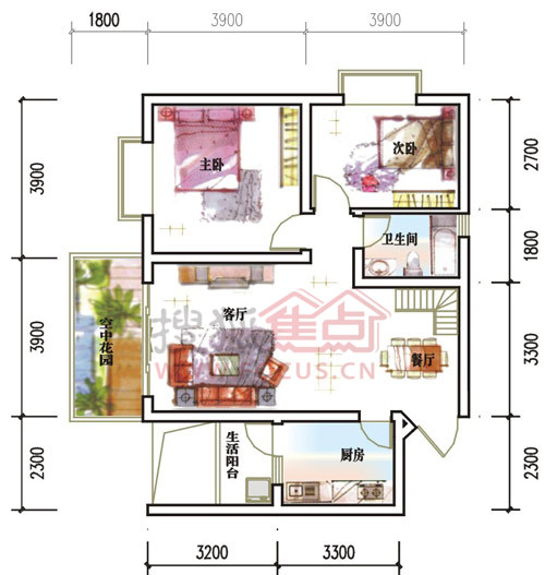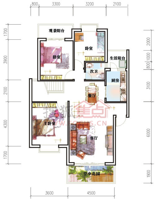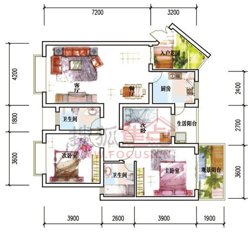 主力为一梯两户,穿堂风,全明阳光户型,入户花园,空中花园设计,两大庭院组团景观还原院子的居住文化。