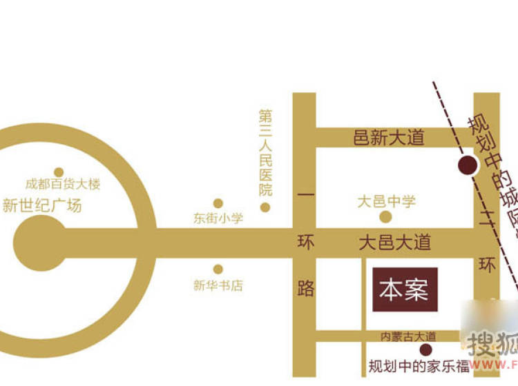 中铁金山项目位于南延线大邑大道,在大邑中学斜对面。周边配套有学校、医院、超市、银行等。对面有大型超市诺马特,旁边规划有五星级酒店,项目西面是“家乐福”,步行十分钟即可到达。成大快铁站台离本项目约500米的距离,快铁通行后到达成都市中心仅需18分钟。