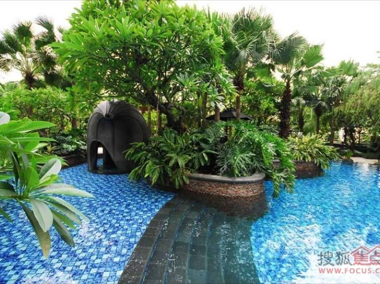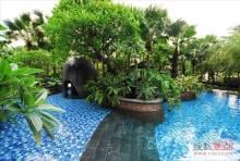 东南亚跌水景观大门,由层层跌水、特色岗亭、喷泉、泰式雕塑小品等构成,大门广场还有大象戏水雕塑。泰式SPA游泳池包括有更衣室、泰式按摩池,泰式小木屋,水中吧台、泰式跌水喷泉等。