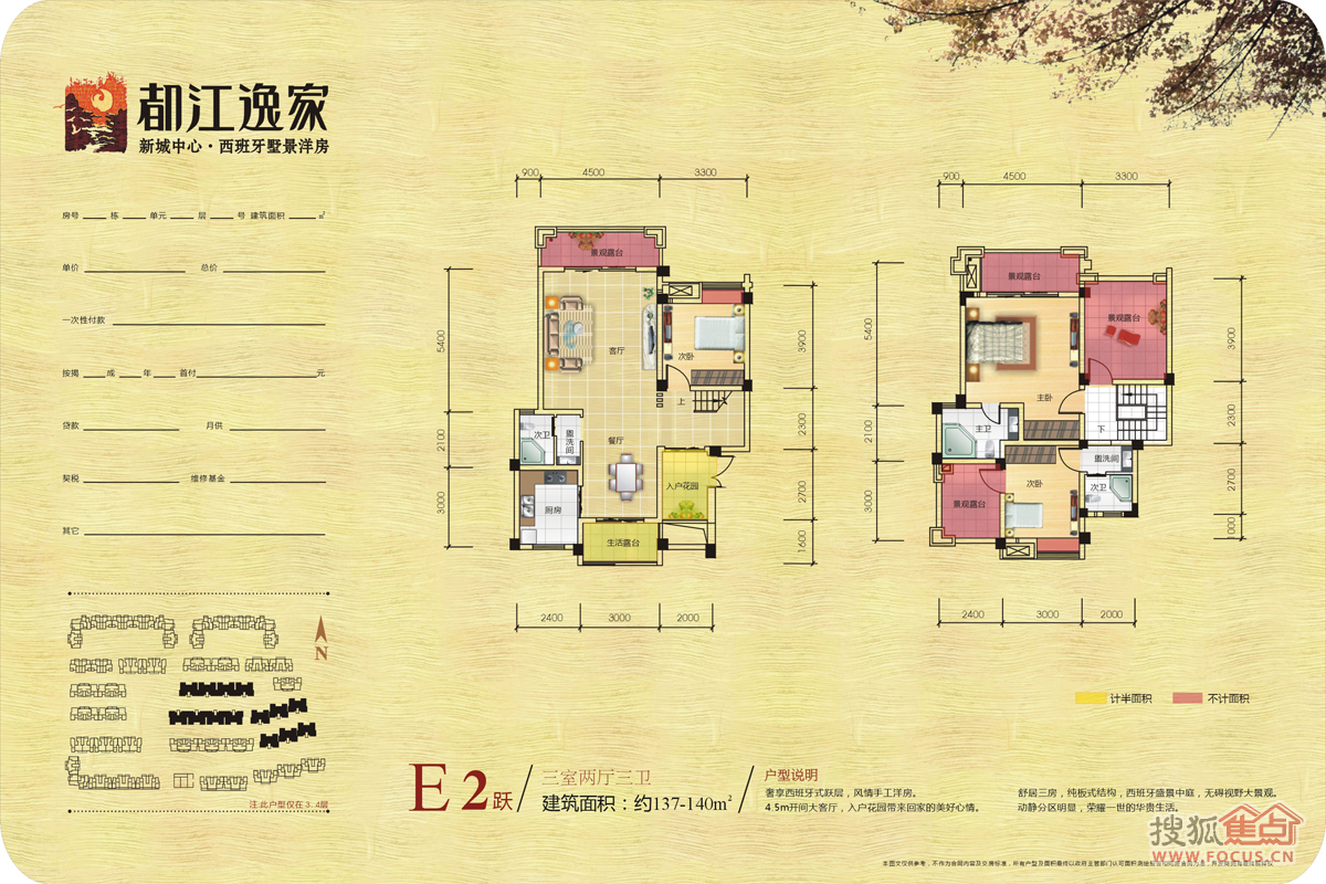 “都江逸家”项目占地约85亩,规划容积率1.0,以3-6层多层为主要建筑形态,一梯两户板式,南北行列式规划布局,低容、低密、高品质居住社区,集中大型中庭景观,西班牙风情园林;建筑设计既保留川西居民的传统风格,又融入了现代欧式元素。项目户型精心设计,注重经济适用的同时兼顾舒适性,8度抗震设防,更安全,更放心。