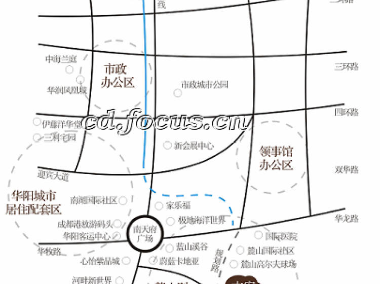 华阳二医院、南湖公园、成都市实验外国语学校西区、极地海洋公园、1200亩湿地公园、市政公园、成都旅游港码头、世纪城会展中心、高尔夫球场、高尔夫练习场、成都第一人民医院、家乐福超市