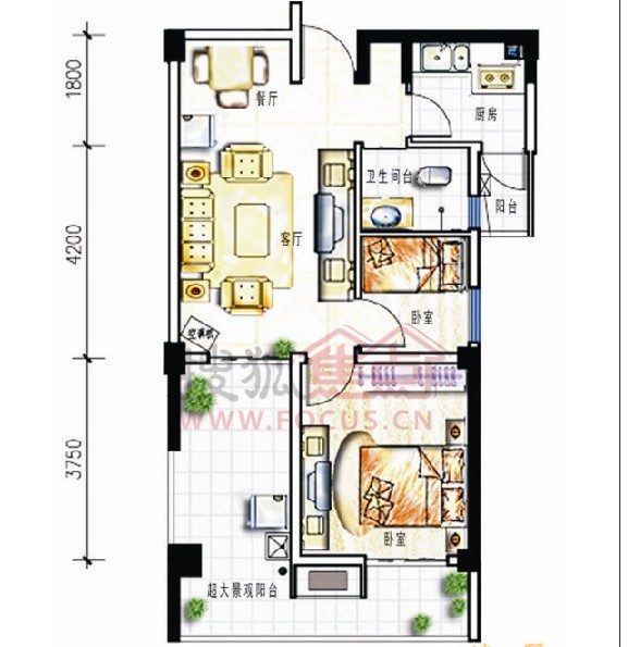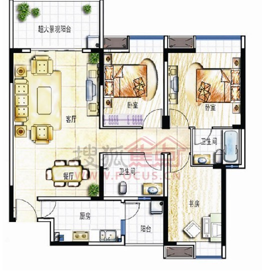 紫坪锦苑户型从套二到套三,面积为60—128平米。