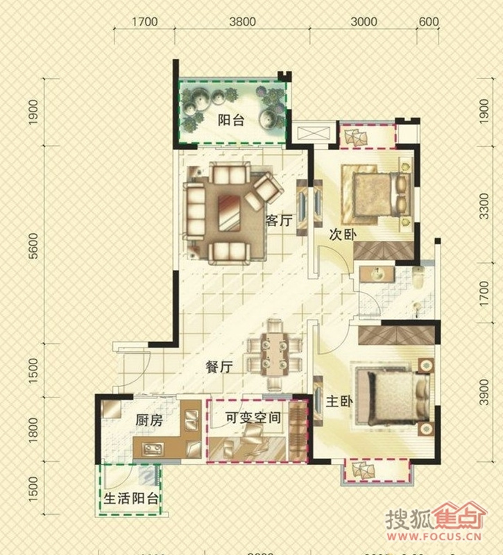 2室2厅1卫-、5号楼A3户型2室2厅1卫1厨 81.38㎡户型