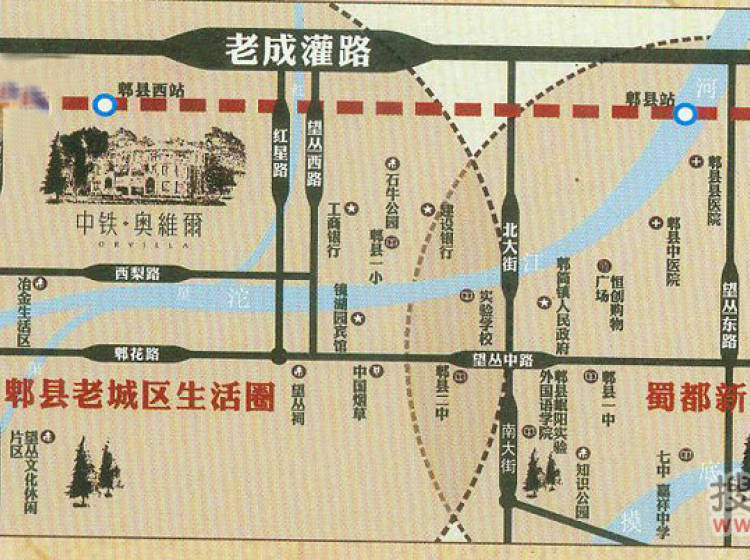中铁奥维尔位于郫县的主城区板块望丛片区,望丛西路和西梨路的交汇处,距离成都市区12公里,“五横四纵”干道路网形成便捷的交通体系,周边有305、302等多条公交线路经过,临近地铁6号线望从祠站,“双铁”沿线。占地410亩,与望丛祠、石牛公园、市政公园咫尺临近,依傍沱江河、红星渠,“两河三公园”的自然优势。中铁奥维尔邻近望丛祠、石牛公园、市政公园,依傍沱江河、红星渠,“两河三公园”的自然优势明显。中铁奥维尔邻近郫筒一小、郫县一中、郫县二中,可正读,学区区位优势显著。 中铁奥维尔绿化率30%,容积率0.86,物业费2元/平米.月。