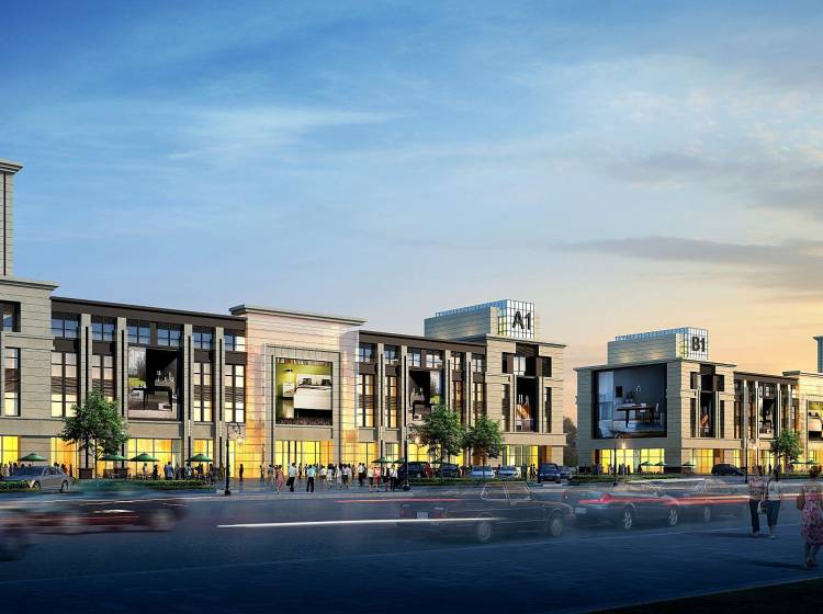 中润欧洲城项目位于成都新都龙桥家具园区,成彭高速辅线设专门路口通达本项目。项目占地面积近600亩,建筑面积达100万平米。