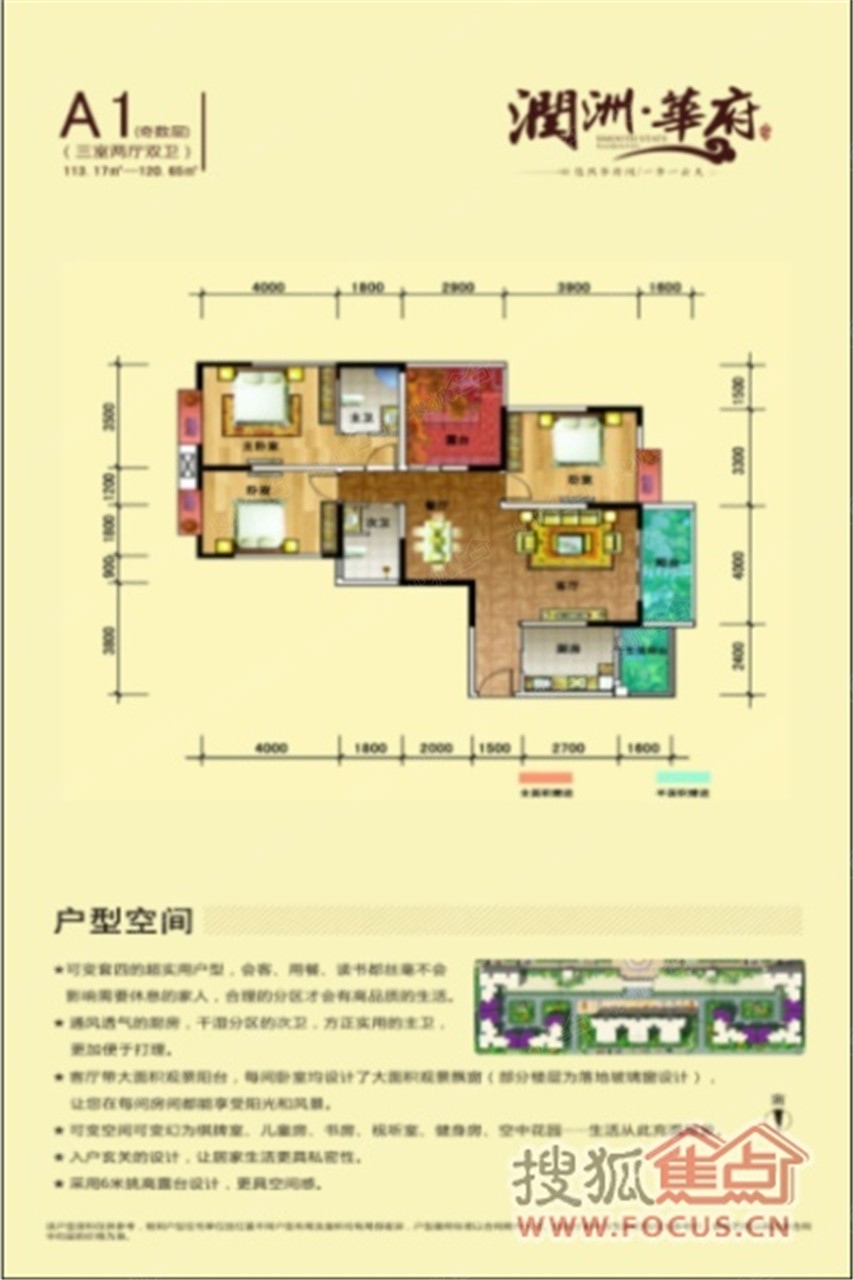 3室2厅2卫-润州华府A1型(奇数层)户型