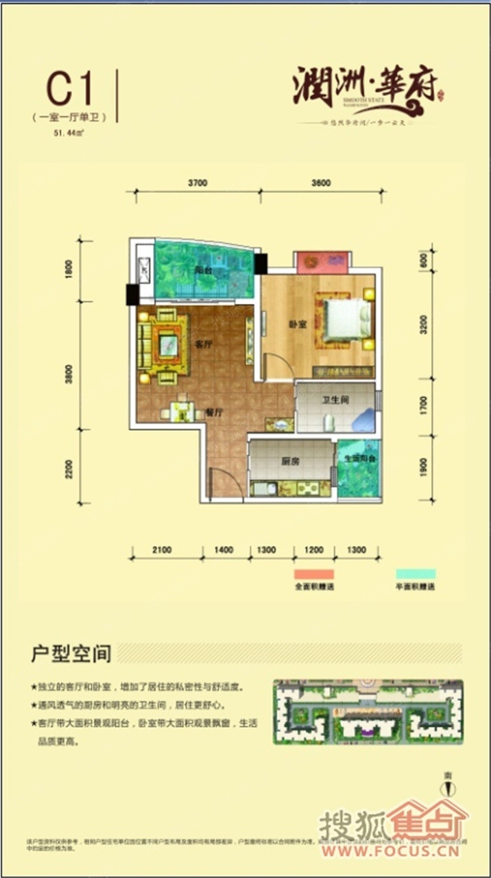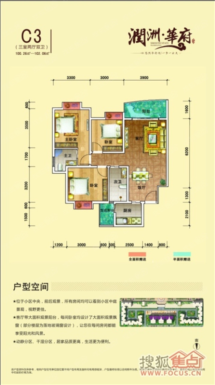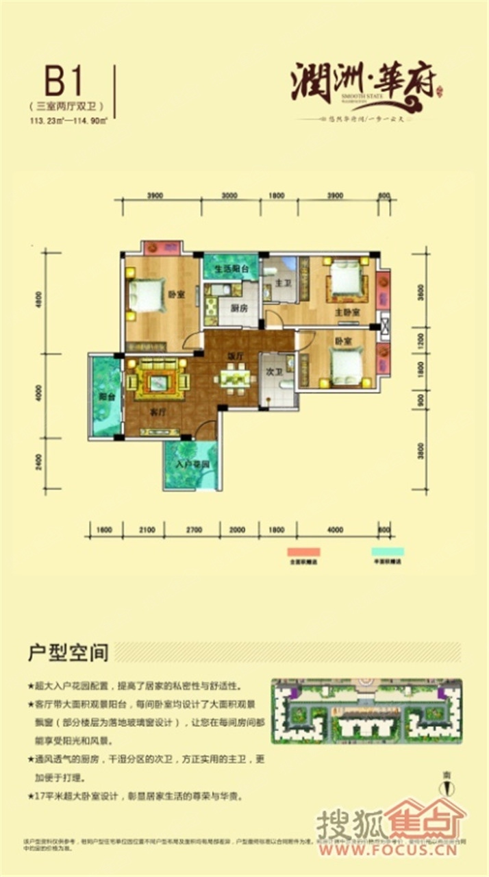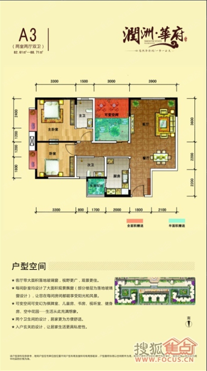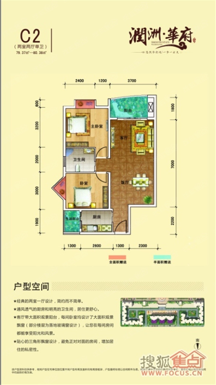 润洲华府舒居户型---大阳台、大飘窗并非大户型的专利,在润洲华府,即使是90平米的户型也能拥有舒适的居住尺度。