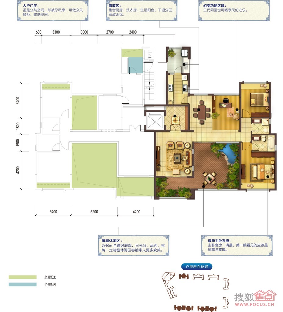 鹭湖宫8区位于6000亩国色天乡国际度假区最黄金的区位,距离交通,购物,娱乐,餐饮,教育等多种配套都只需要步行5分钟。首次推出创新产品:平层小院,让每一户家庭都能享受有院子的庭院生活。不仅如此,一梯两户的板式结构,电梯直接入户的高级配置,面积仅有118和138平米的平层小院每户却有52和65的㎡的赠送空间。