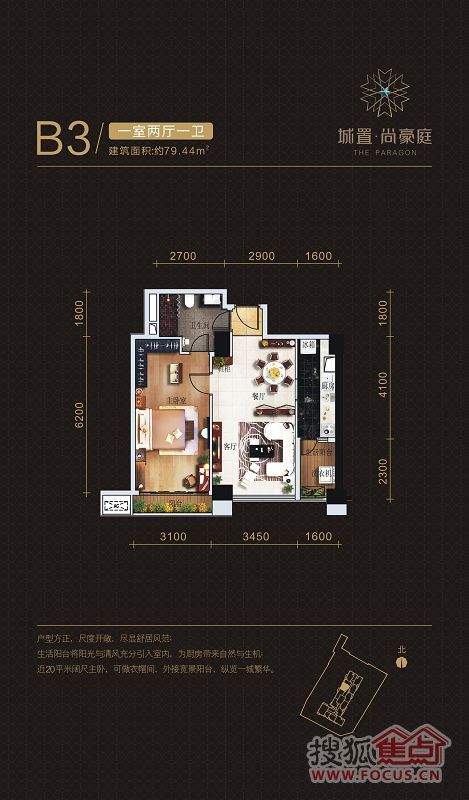 1室2厅1卫-城置尚豪庭B2户型