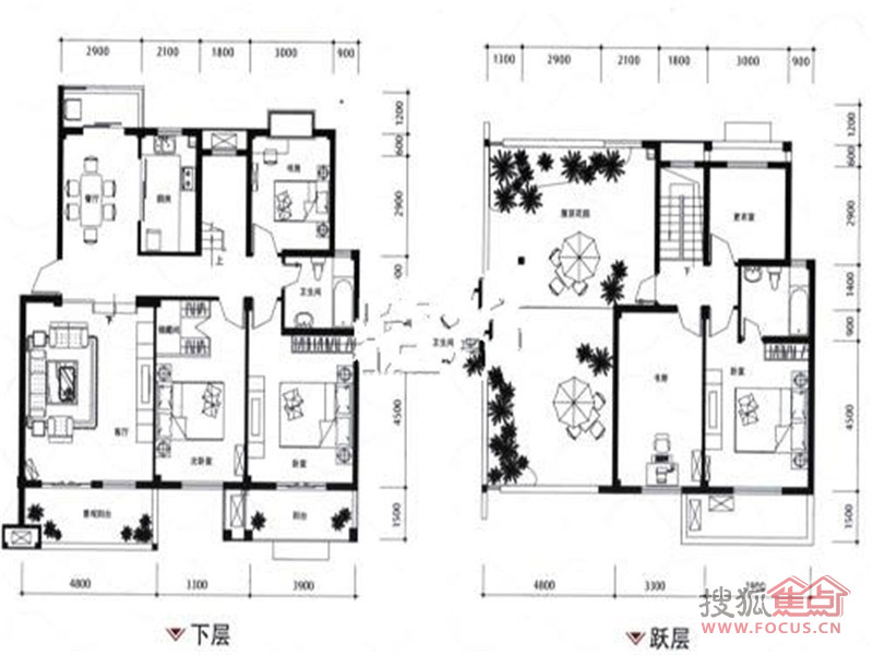 卧室凸窗宽80mm,叠景跃层,大露台私花园近60㎡,完全免费奉送。