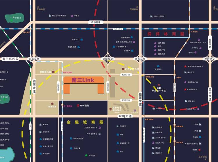 项目交通便捷,毗邻3条地铁线(1号线、5号线和7号线),地铁出口就是商业街的入口,紧邻建设中5号线石羊立交站及市一医院站 ,输送区域外的源源不断的消费力。此外,紧临3条主干道(益州大道、剑南大道,府城大道),位置四通八达。