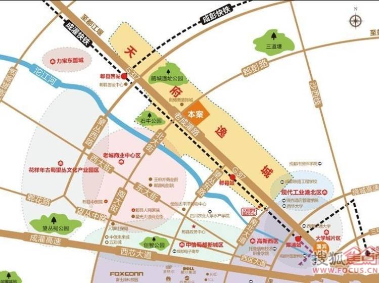 中铁·世纪中心项目位于天府逸城生态商务区核心,即郫县传统商圈--北大街北延线上;西临已建成并营业的集中商业--西都会及格林大道(规划道路);南为成灌高铁,为新老城区的交汇处,承上启下,地理位置十分重要,扼守从郫县老城至北部新城的门户位置。