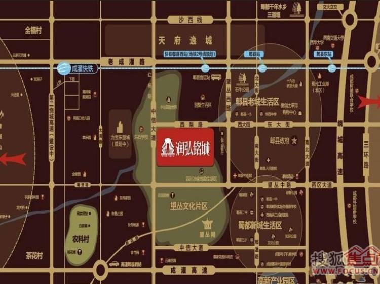 润弘铭城,位于郫县红杨路中信大道四段,老成灌路以南,中信大道延线。邻近成灌城际快速铁路、成灌高速的便利,多条线路直通成都。