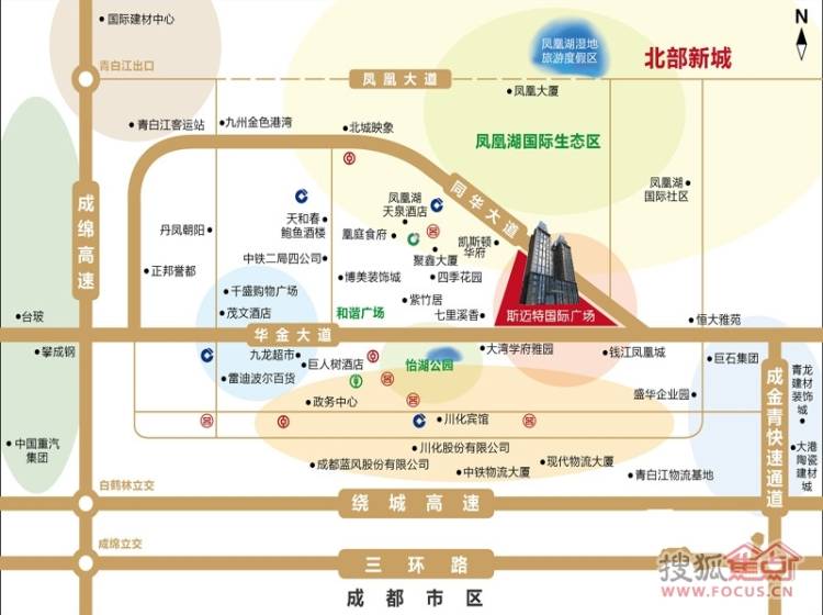 斯迈特国际广场为青白江区首席5A超甲级写字楼。位于青白江区华金大道三段,同华大道和华金大道黄金三角处,毗邻15000亩凤凰湖湿地公园,坐镇城市稀缺立体生态广场,领属青白江CBD中心多功能级城市地标。
