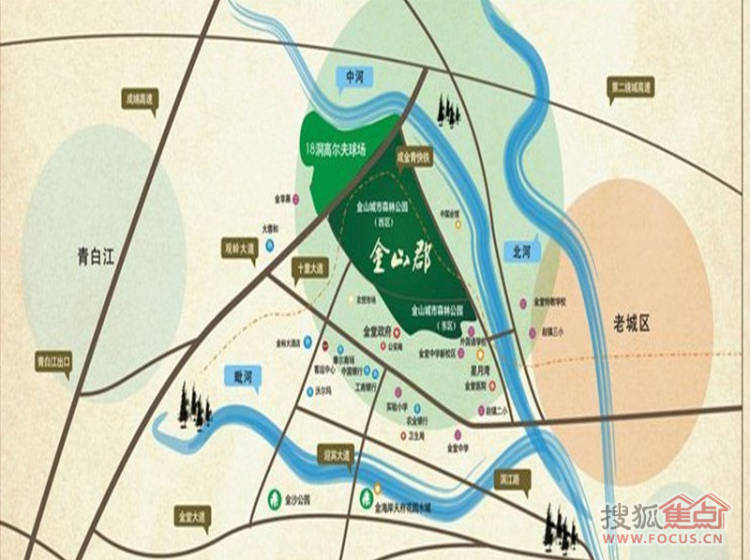 金山郡位于成都金堂城市森林公园内,总占地面积为137000平米,总建筑面积35万平米,项目外拥1200亩城市森林公园,内揽一湾碧绿的湖水,紧临金堂政务中心,周边学校、体育场、商业等林立,举步即至,繁华都市与自然宁静之间的金山郡,成千宠爱集于一身。