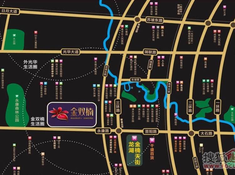 蓝光金双楠占地约134亩,总户数为3238户。 项目位于三环路草金立交外侧约1.3公里永康路上,公交线路有:123路、908路、208路、339路、334路。