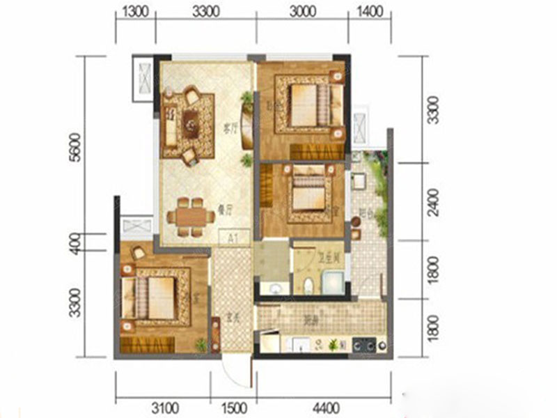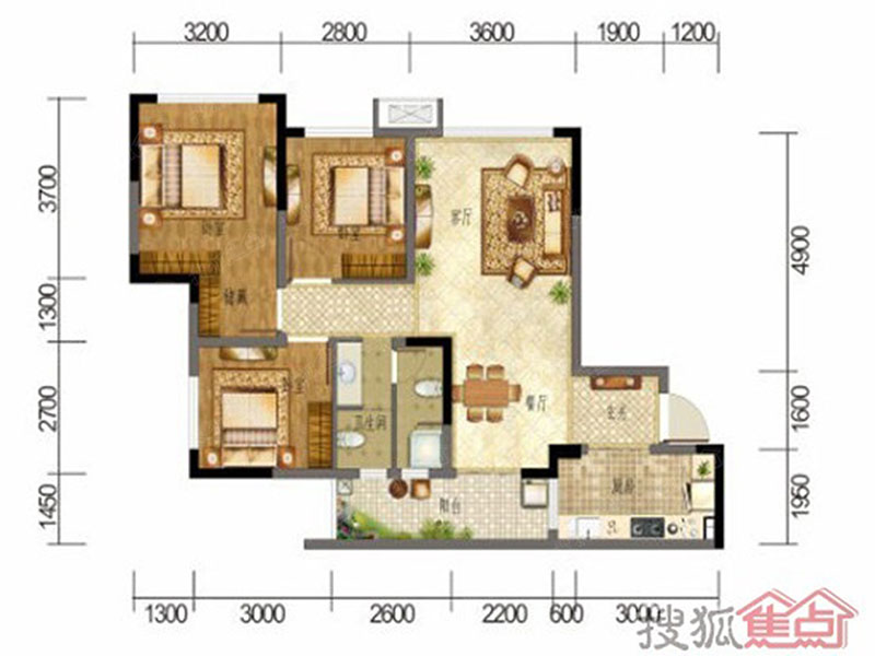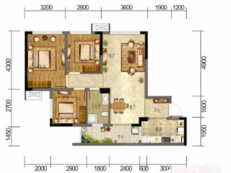 户型面积50-74㎡舒适套二套三户型,超高赠送率,户户方正,超大落地窗保证较佳的视线和通风效果,打造出中小户型中的精品!
