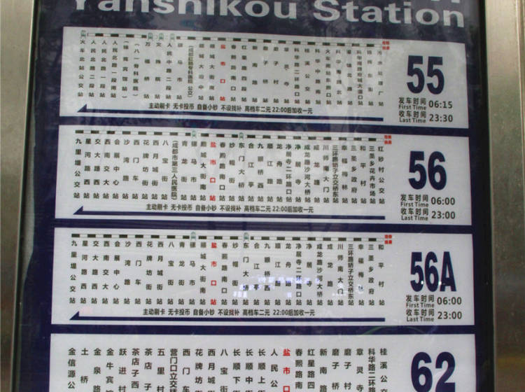 48路:盐市口站,新南门汽车站,顺城大街南站,锦兴路西站,锦兴路东站