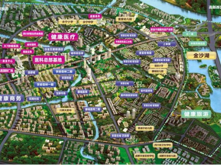 医科总部基地位于温江.永宁.成都国际医学城板块,该区域分为健康商务/健康旅游/健康医疗;其中健康商务配套有: 2000平益民菜超、社区健康会所、红旗连锁、007超市、天天大药房 /25万方逸都城意向签约入驻:乡村基、中影雅图影院等 周边商场有家乐福、伊藤洋华堂、沃尔玛、国色天香商业圈等。 健康旅游配套:30亩市政公园(距离本案50米)、50亩体育公园(小区内)、2800亩金沙湖湿地公园、温江198健康绿道、合一庭养生会所、药博园、芙蓉古城3A级旅游区;健康医疗:华西医院永宁分院—已开业(眼科、康复科等全部搬到此分院)、 八一康复中心(距离本案300米)、北京阜外心脑血管医院(400亩地,现已全面开工)等 该区域将是继国色天乡板块、非物质文化遗产博览园、青羊总部基地后又一置信集团项目。