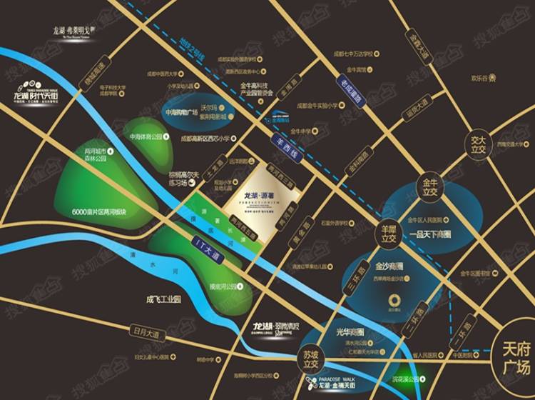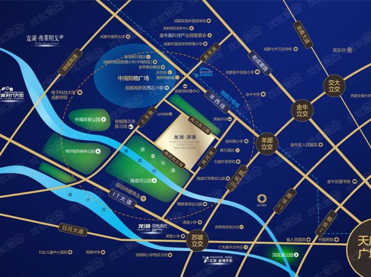 教育:金苹果中海国际社区幼稚园、成都外国语学校附属小学,成都实验外国语学校、985名校电子科技大学、211名校西南交通大学犀浦校区、四川外语学院成都学院等