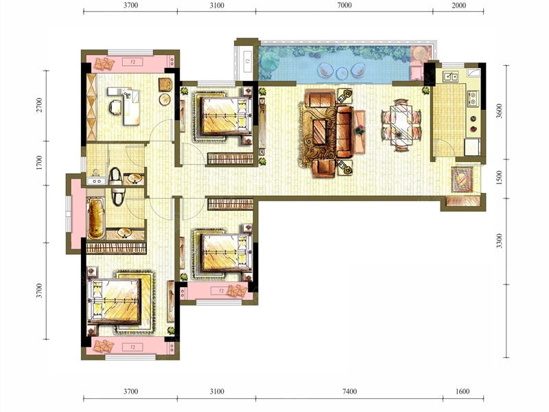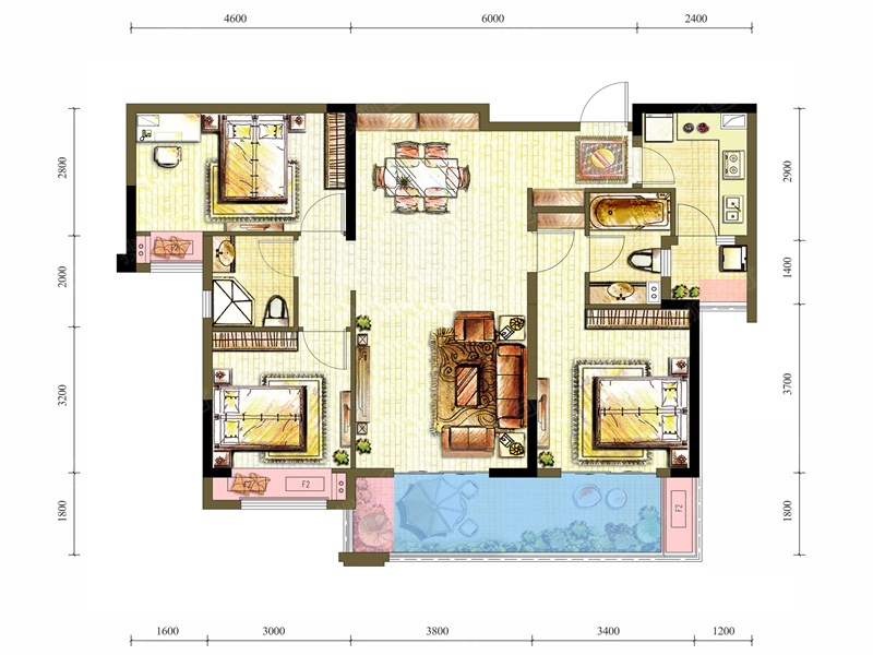 3室2厅2卫-115平三室
