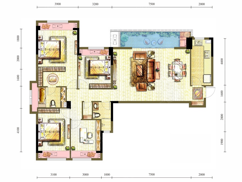 4室3厅3卫-166平四室